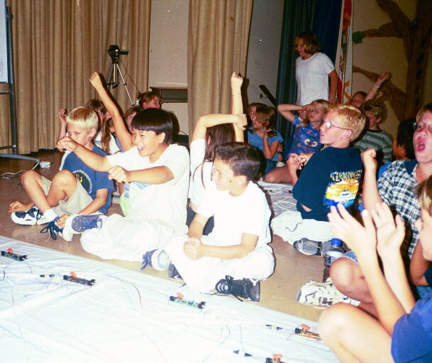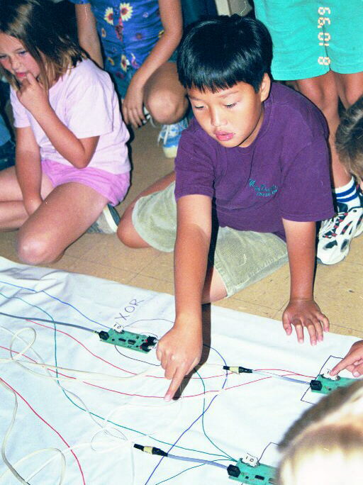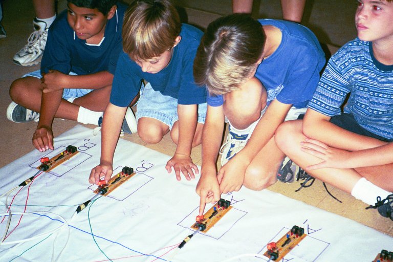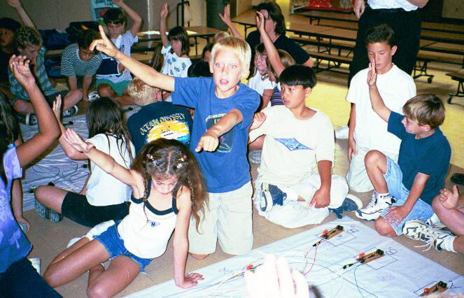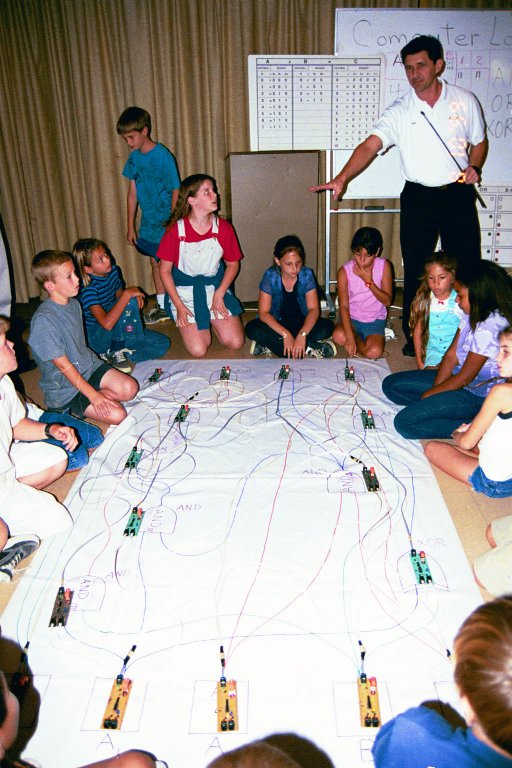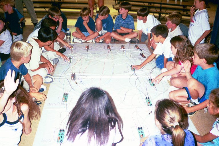 to guide the students in connecting their gates. Two teams run two