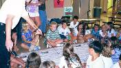 The students demonstrate teamwork and problem solving as they help