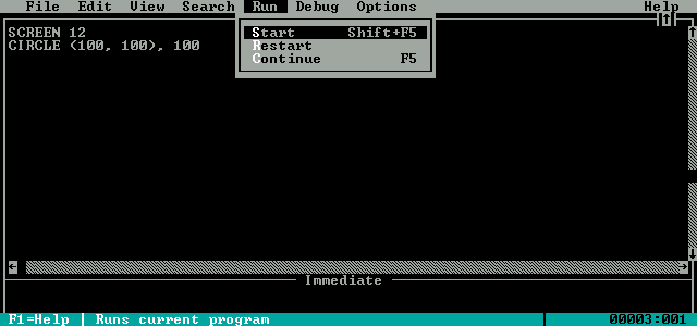 Start by opening a QBASIC window: