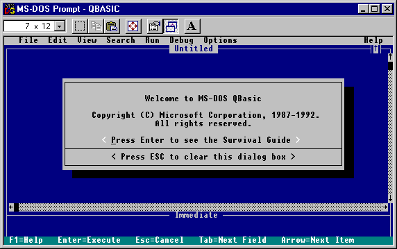 QBASIC program. QBASIC normally starts with a welcome screen as shown in this